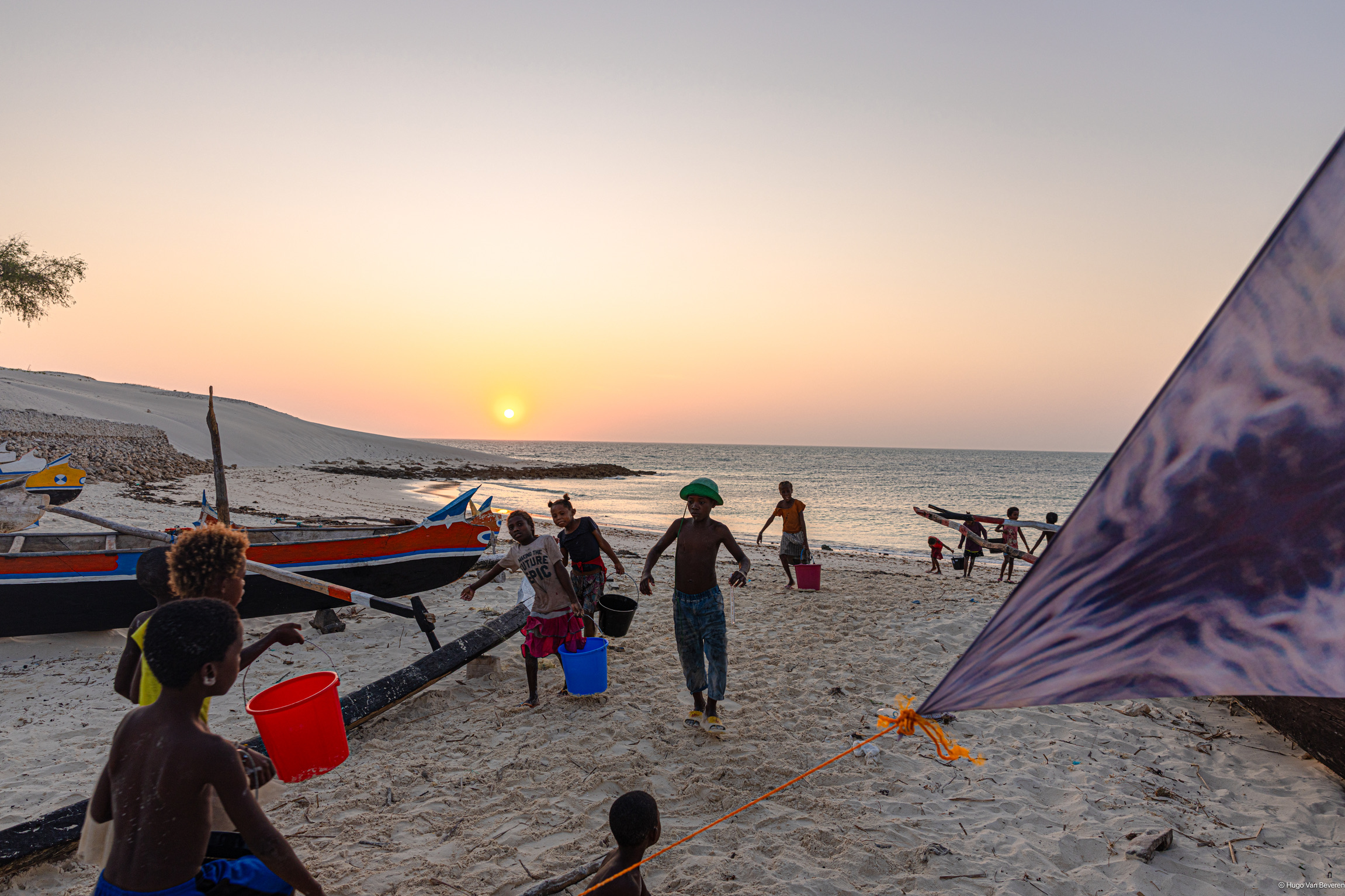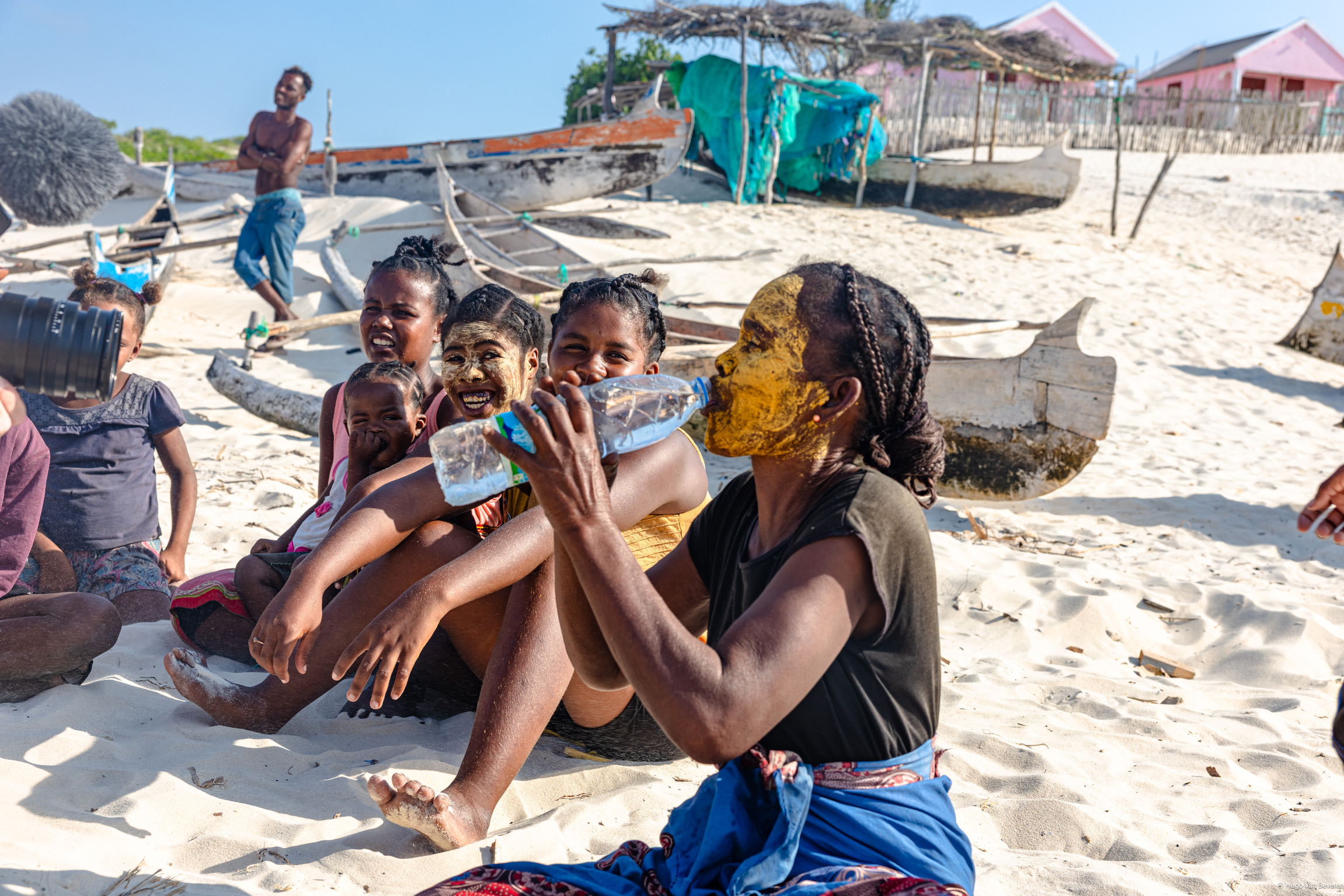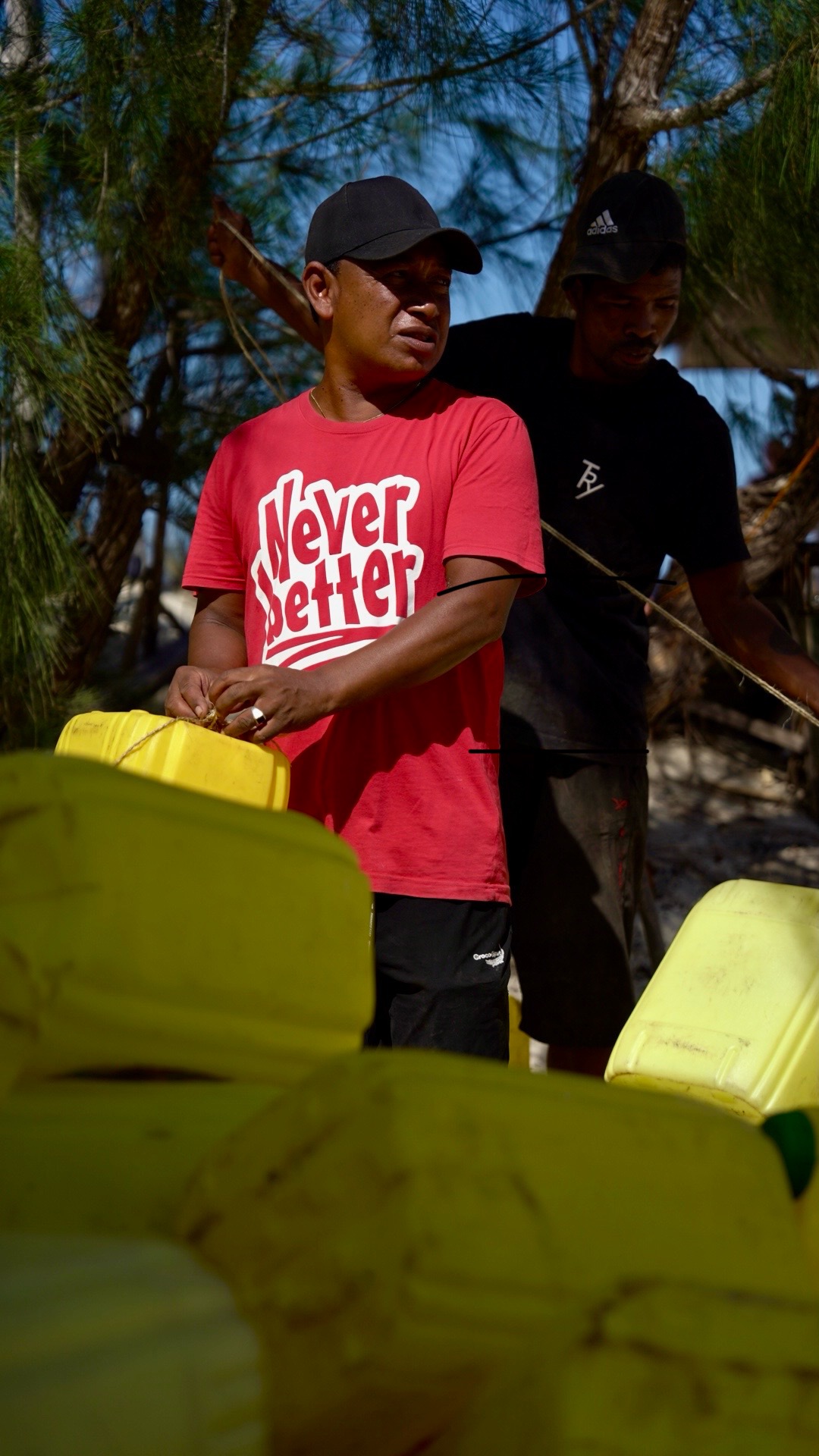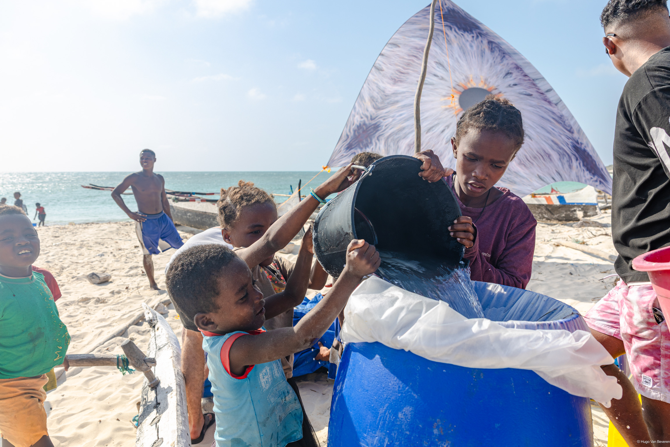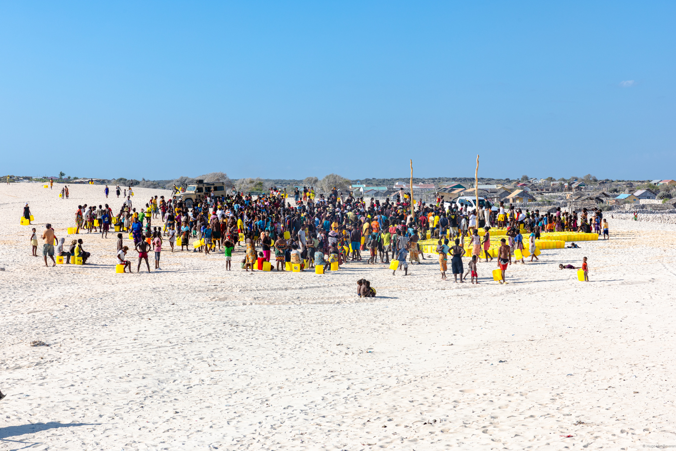 The jerrycans were transported by a large truck to Toliara, then redistributed into three smaller 4×4 vehicles. For the final stretch, they were transported by pirogues and manually carried to the village of Tsiandamba.
